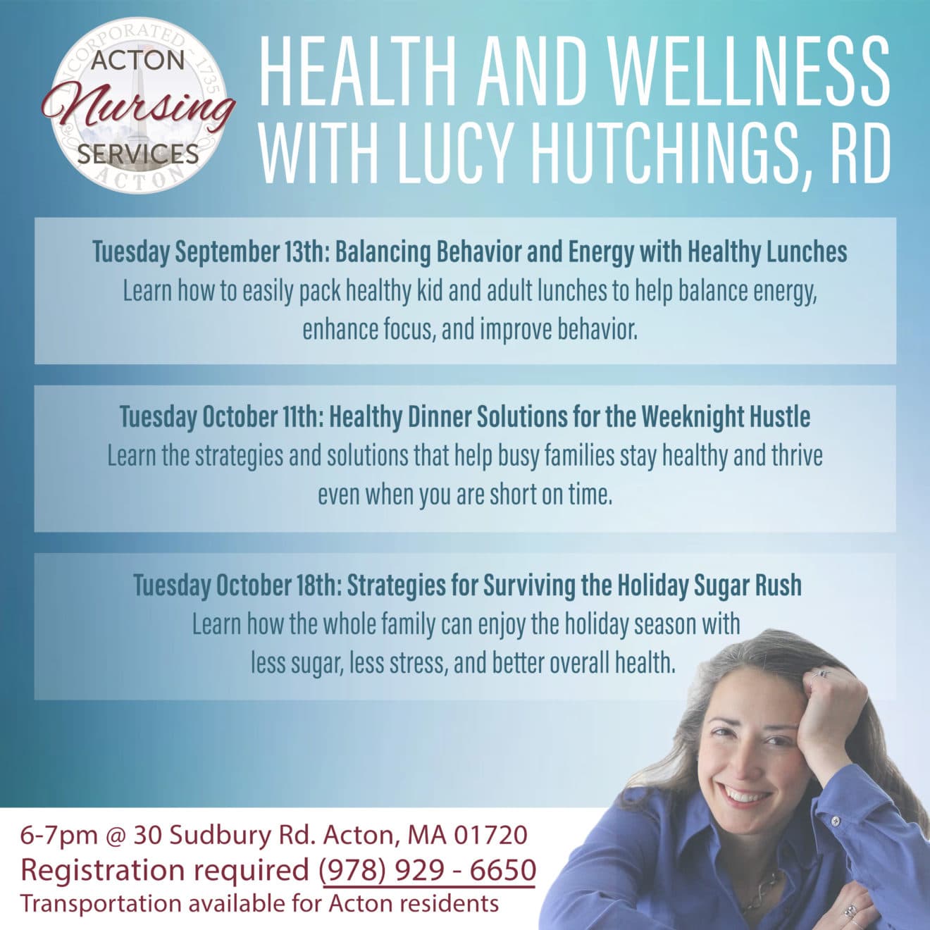 Town Manager John Mangiaratti is pleased to announce that the Town of Acton will host a series of wellness-focused events over the next two months, presented by Acton Nursing Services.