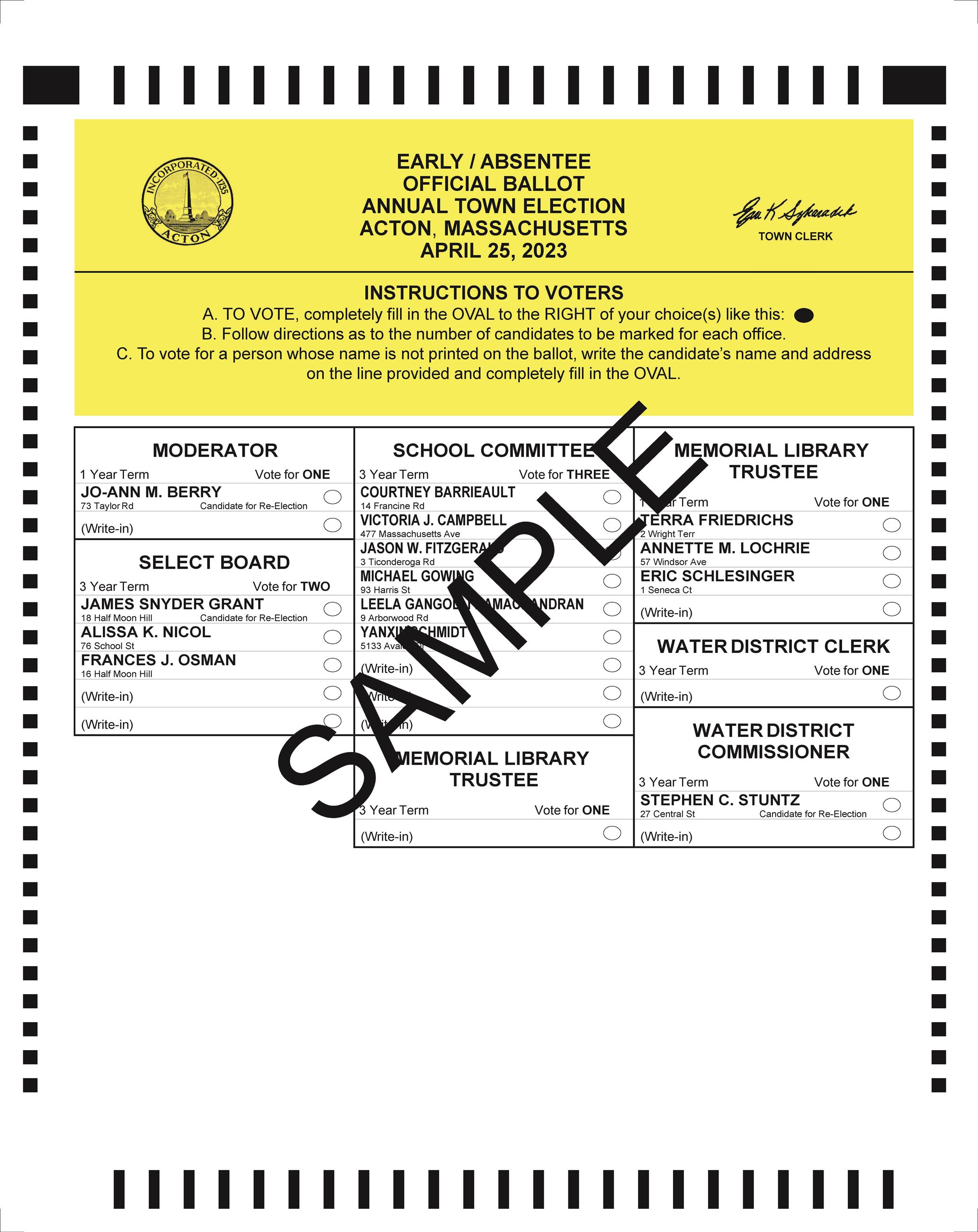 View a sample ballot for the upcoming election here: https://www.acton-ma.gov/ImageRepository/Document?documentId=8650